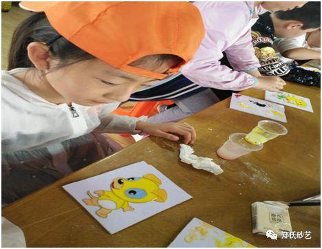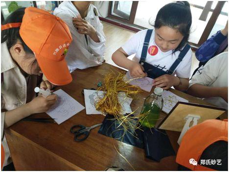 參觀后,五十余名同學,自己動手體驗描圖、粘絲、填砂等砂畫制作過程。