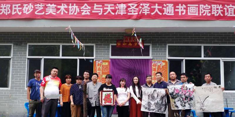 天津圣澤大通書畫院的老師們學習砂畫制作