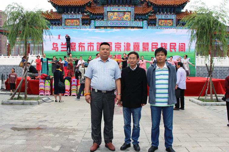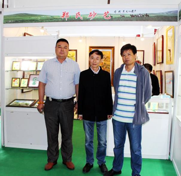 鄭總與河北省文聯(lián)組聯(lián)絡(luò)處處長張占芳、河北省文聯(lián)機關(guān)黨委書記常立青在烏蘭察布市首屆京津冀蒙民族民間藝術(shù)博覽會展位前合影