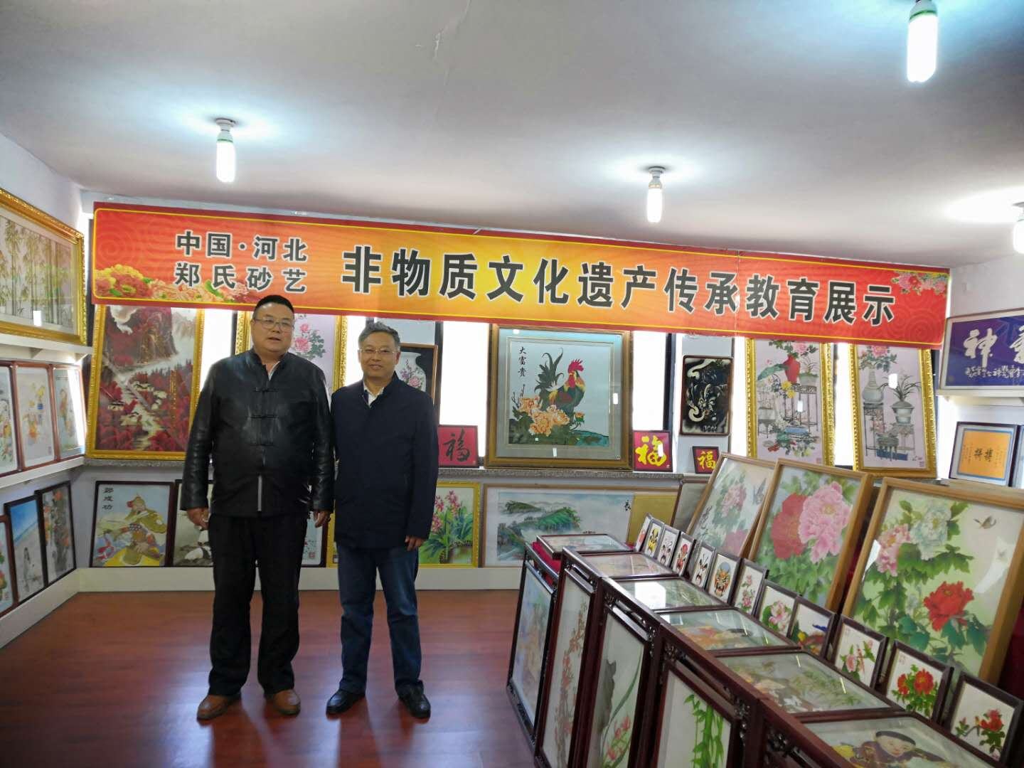2019年56日,縣政協辦公室主任馬建軍來到鄭氏砂藝調研考察。馬主任在鄭總的陪同下考察了砂畫制作車間、書畫裝裱車間、榮譽展覽室并參觀了鄭氏砂藝非遺文化傳承教育展廳。