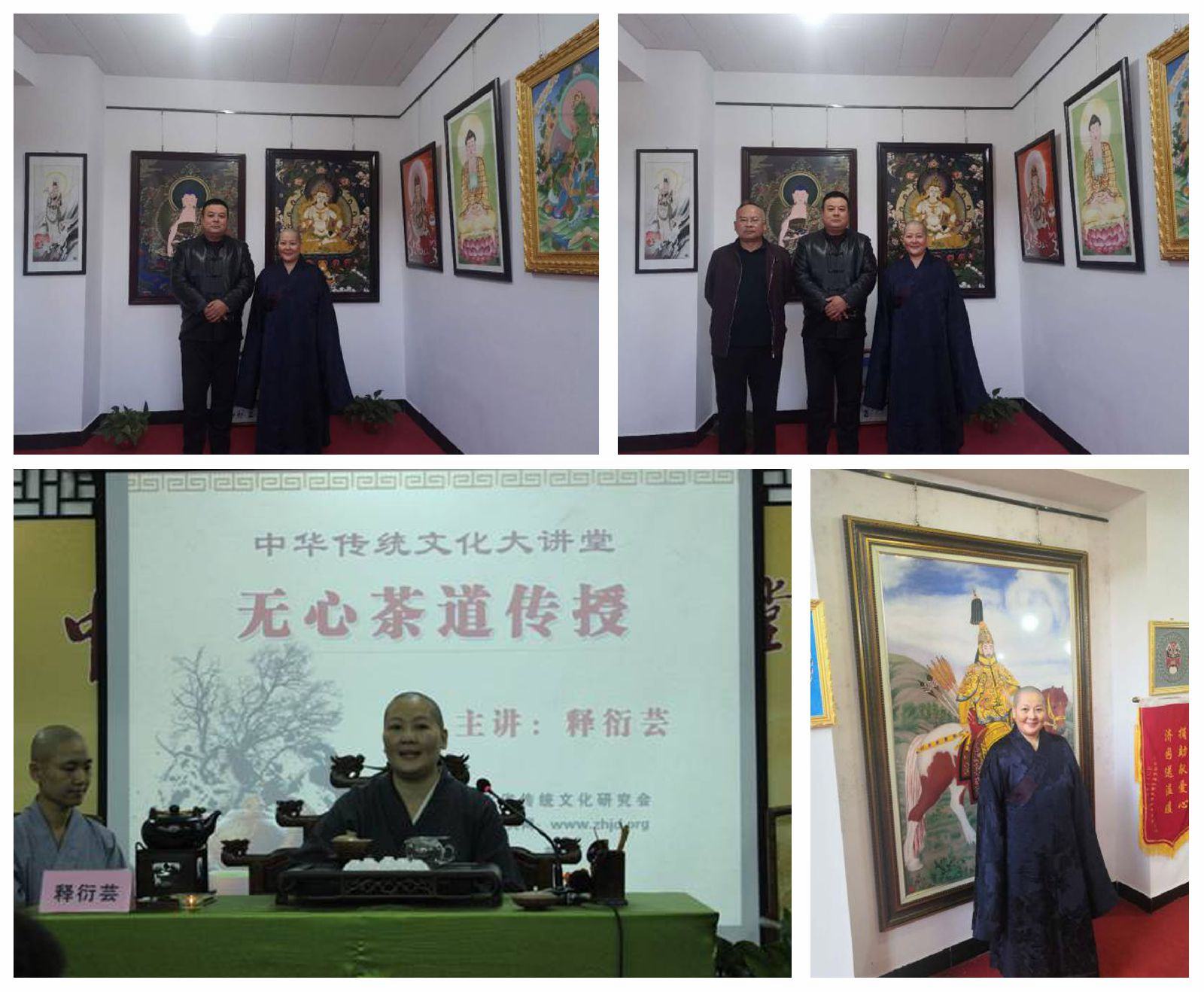 10月13日。興隆縣鄭氏砂藝文化有限公司董事長(zhǎng)鄭鐵軍在公司會(huì)見(jiàn)了原縣民族宗教事務(wù)局局長(zhǎng)蔣學(xué)金率領(lǐng)的興隆縣隆蕓寺住持、禪茶研修班導(dǎo)師、國(guó)際茶藝師釋衍蕓法師等一行。并引導(dǎo)衍蕓法師,觀賞了公司美輪美奐的砂藝作品。釋衍蕓法師為金剛薩埵等十幾幅佛教作品進(jìn)行了灑凈。通過(guò)灑凈更加增強(qiáng)了砂藝作品的靈感性和親和力。釋衍蕓法師,90年代遍訪諸山茗茶,研習(xí)各派茶藝,精通各類(lèi)茶泡制與品鑒,后將禪學(xué)融入茶事,開(kāi)創(chuàng)“無(wú)心禪茶”,借茶修心,益人無(wú)數(shù)。釋衍蕓法師是禪茶研修班導(dǎo)師,國(guó)際茶藝師,曾多次受邀代表中國(guó)到馬來(lái)西亞、法國(guó)等歐亞國(guó)家參加國(guó)際茶藝、茶道表演、研討與交流;現(xiàn)受聘于湖北陸羽(茶圣)紀(jì)念館名譽(yù)館長(zhǎng)。在佛教界和茶道界享有很高名望。