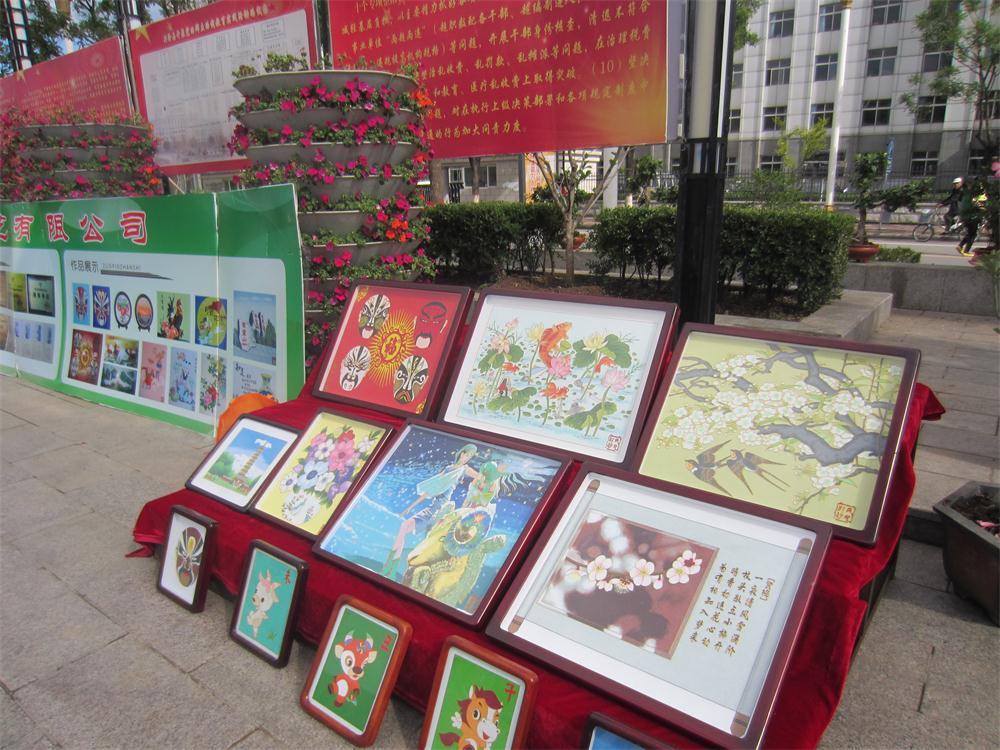2014年6月7日,興隆縣“世界文化遺產日”宣傳慶祝活動,在興隆中心廣場隆重舉辦。鄭氏砂藝公司作為興隆文化產業的優秀代表,展示了被列省級的非遺產品的鄭氏金銀絲砂畫。色彩靚麗的鄭氏金銀絲砂畫,吸引了眾多興隆家鄉父老們的佇足觀賞。這是我公司時隔兩年以后,再次為興隆人民奉送一頓精神大餐。