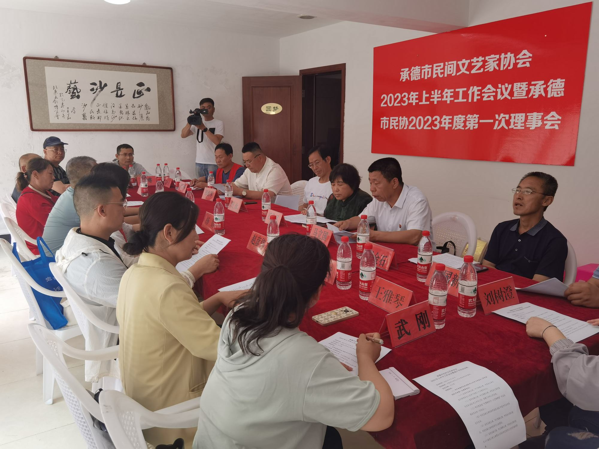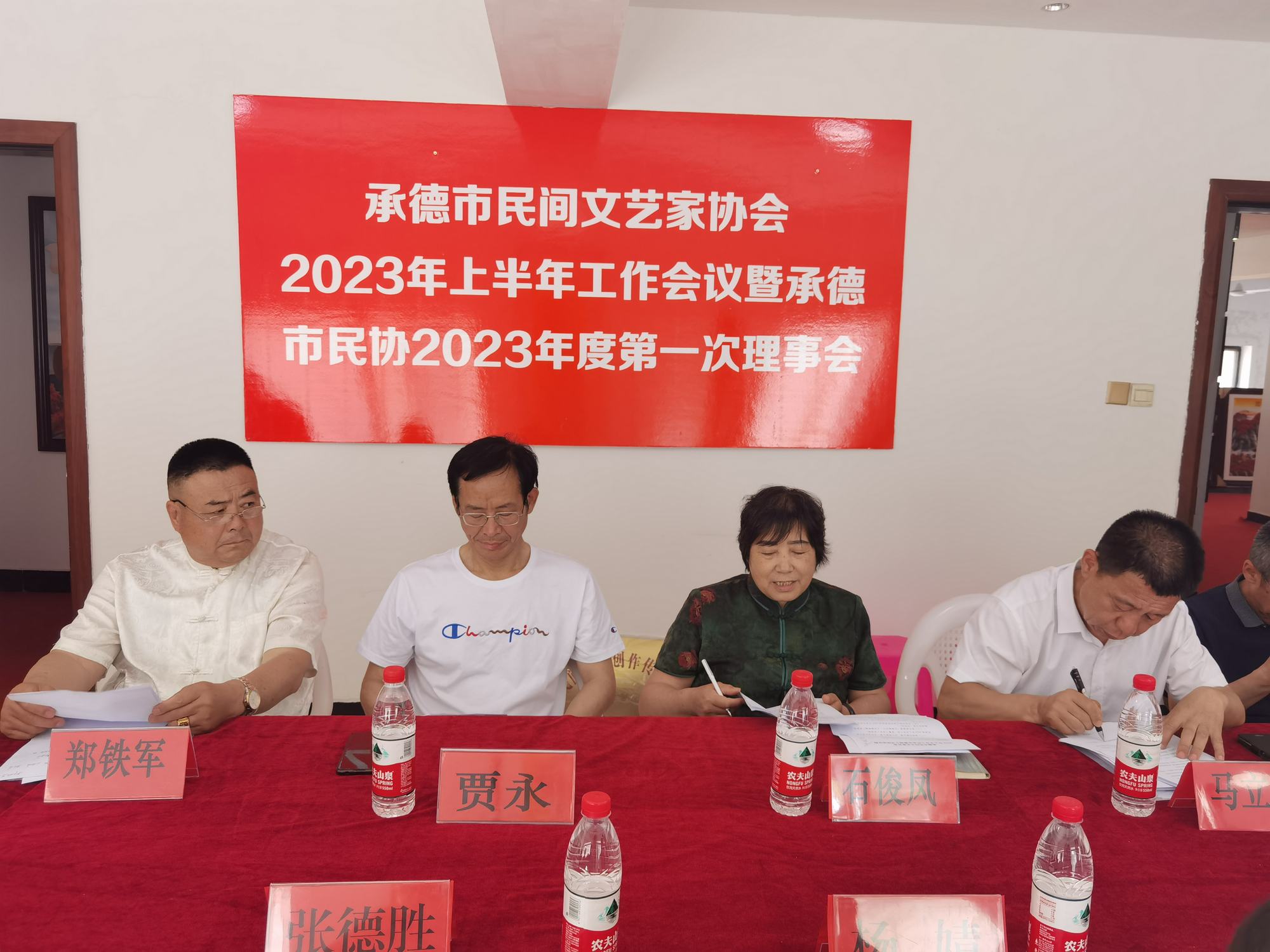 2023年6月20日,承德市民間文藝家協會2023年上半年工作會議暨承德市民協2023年度第一次理事會在興隆縣鄭氏砂藝文化有限公司勝利召開。出席此次會議的有河北省民協副主席、承德市文聯副主席、承德市民協主席石俊鳳,興隆縣文聯主席賈永,承德市民協秘書長馬立國,承德市民協副秘書長龐麗君,承德市民協副主席、興隆縣民協主席鄭鐵軍,以及承德各區縣民協代表參加會議,會議由市民協秘書長馬立國主持。