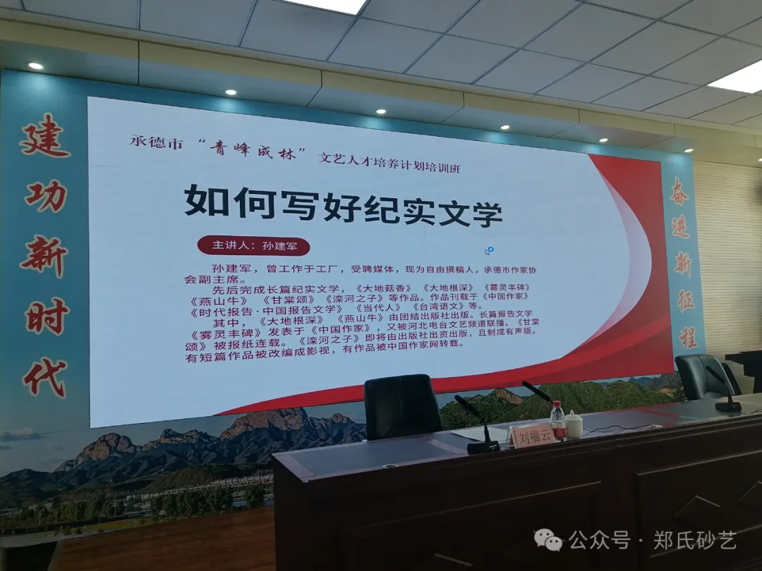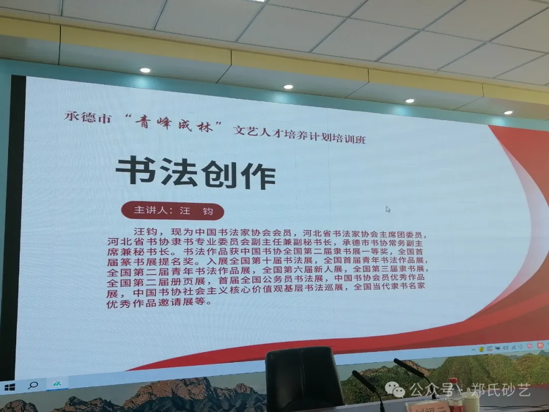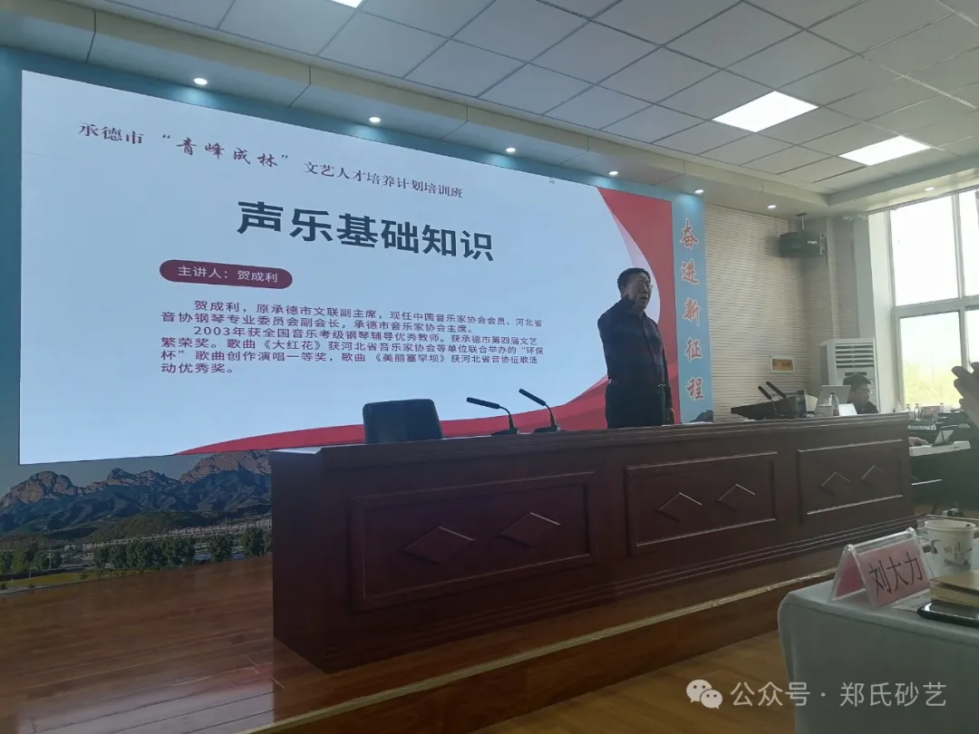 為加強(qiáng)全市文化人才隊(duì)伍建設(shè),促進(jìn)文化高質(zhì)量發(fā)展提供堅實(shí)保障,4月23日,承德市文聯(lián)在灤平縣周臺子村全國農(nóng)村實(shí)用人才培訓(xùn)基地舉辦2024年承德市“青峰成林”文藝人才培養(yǎng)計劃啟動暨培訓(xùn)開班儀式。參加儀式的主要領(lǐng)導(dǎo)有承德市文聯(lián)黨委書記何英華、承德市黨組成員副書記李淑杰、中共灤平縣常委教育辦公室主任李佳可、全市各縣區(qū)文聯(lián)主席、市屬各文藝家協(xié)會主席和參加培訓(xùn)的120名學(xué)員。本次培訓(xùn)為期3天,邀請了音樂、美術(shù)、文學(xué)、書法、攝影、舞蹈等方面的知名專家進(jìn)行授課。鄭氏砂藝技師趙文紅經(jīng)市民協(xié)推薦,參加了此次人才培訓(xùn)活動,并取得了優(yōu)異的成績。