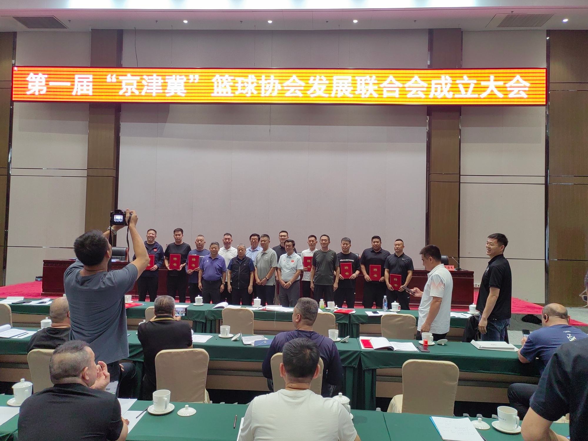 2024年9月12日上午,第一屆“京津冀”籃球協會發展聯合會成立大會于在北京市懷柔區雁棲湖勝利召開,參加會議的有北京市通州區籃球運動協會主席曹國虎、北京市懷柔區籃球協會主席李鳳亮、北京市大興區籃球協會主席張海忠、北京市平谷區籃球運動協會主席張亞東、北京市門頭溝區籃球協會主席王會、北京市密云區籃球運動協會主席王懷平、北京市西城區籃球專業委員會關雨、北京市東城區籃球運動協會主席董瑋、北京市朝陽區籃球運動協會主席劉杰、北京市房山區籃球運動協會主席馬德亮、北京市懷柔區神韻訓練基地王潘磊、天津市武清區籃球協會主席楊瑞偉、天津市西青區籃球運動協會主席趙犀、天津市東麗區籃球協會主席徐海泉、天津濱海新區籃球協會主席趙國萍、天津市北辰區籃球運動協會主席賈蔚亞、天津市寶坻區籃球協會主席王懷瑤、天津市薊州區籃球協會主席蘇昌亮、天津市寧河區籃球協會主席馬立勇、河北省廊坊市籃球運動協會主席裴羅江、河北省廊坊市香河縣籃球協會主席劉棟、河北省廊坊市三河市籃球協會主席孫明明、河北省廊坊市大廠回族自治縣籃球協會主席張金凱、河北省廊坊市文安縣籃球協會主席相東、河北省廊坊市霸州市籃球協會主席閆寶光、河北省廊坊市固安縣籃球協會主席楊衛華、河北省承德市興隆縣籃球協會主席鄭鐵軍、副主席李柏林、河北省滄州市任丘市籃球協會主席賈建松、河北省滄州市籃球協會主席張國強、河北豐寧滿族自治縣籃球協會主席何曉川等相關領導。