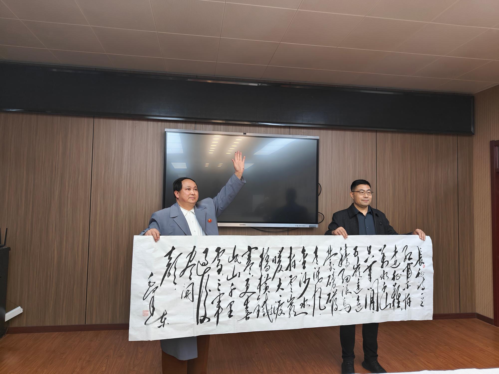 隨后,趙士奎老師移步至學校書法室,應校領導的誠摯邀請,現場揮毫,為興隆縣職業教育中心題寫了校訓,即《厚德、精技、強身》。并書寫了詩詞《長征》,此作品不僅向偉人致敬,更激勵著廣大師生傳承和發揚長征精神,為實現中華民族偉大復興的中國夢不懈奮斗。