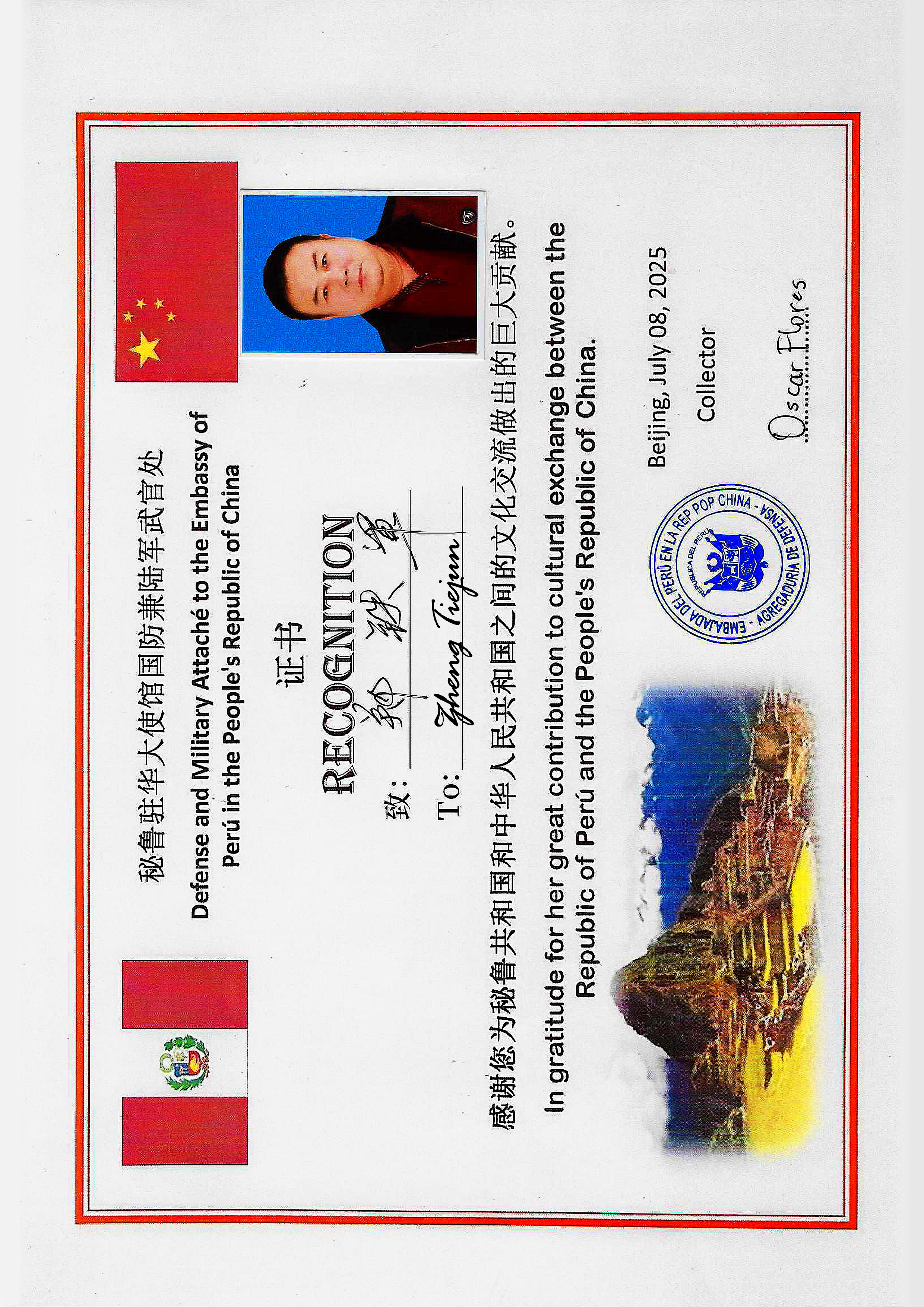 2025年7月15日,應秘魯共和國駐華大使館盛情邀請,非物質文化遺產“鄭氏砂藝”第五代傳承人、中名聯簽約國禮藝術家鄭鐵軍先生今日到訪使館,開展了一場富有成效的中秘文化交流活動。鄭鐵軍先生的代表作《紅紅火火》被秘魯駐華大使館正式作為國禮永久珍藏,成為兩國友誼的新見證。