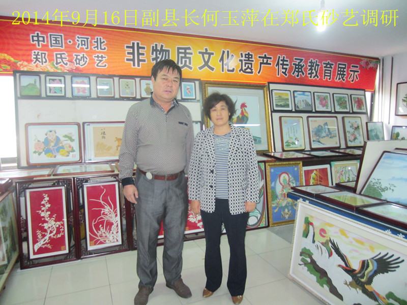 2014年9月16日,副縣長何玉萍來到鄭氏砂藝公司就我縣文化產(chǎn)業(yè)發(fā)展進行考察調(diào)研。何縣長參觀了鄭氏砂藝研發(fā)室、展廳和公司企業(yè)文化墻,聽取了公司總經(jīng)理鄭鐵軍的工作匯報。何縣長對鄭氏砂藝近幾年來所取得的成績給予充分肯定,并希望鄭氏砂藝一定要瞄準(zhǔn)國內(nèi)外兩個市場,抓住生產(chǎn)研發(fā)與市場銷售兩個主要環(huán)節(jié),搞好科技創(chuàng)新,千方百計提升產(chǎn)品質(zhì)量,帶動我縣文化產(chǎn)業(yè)的繁榮發(fā)展。