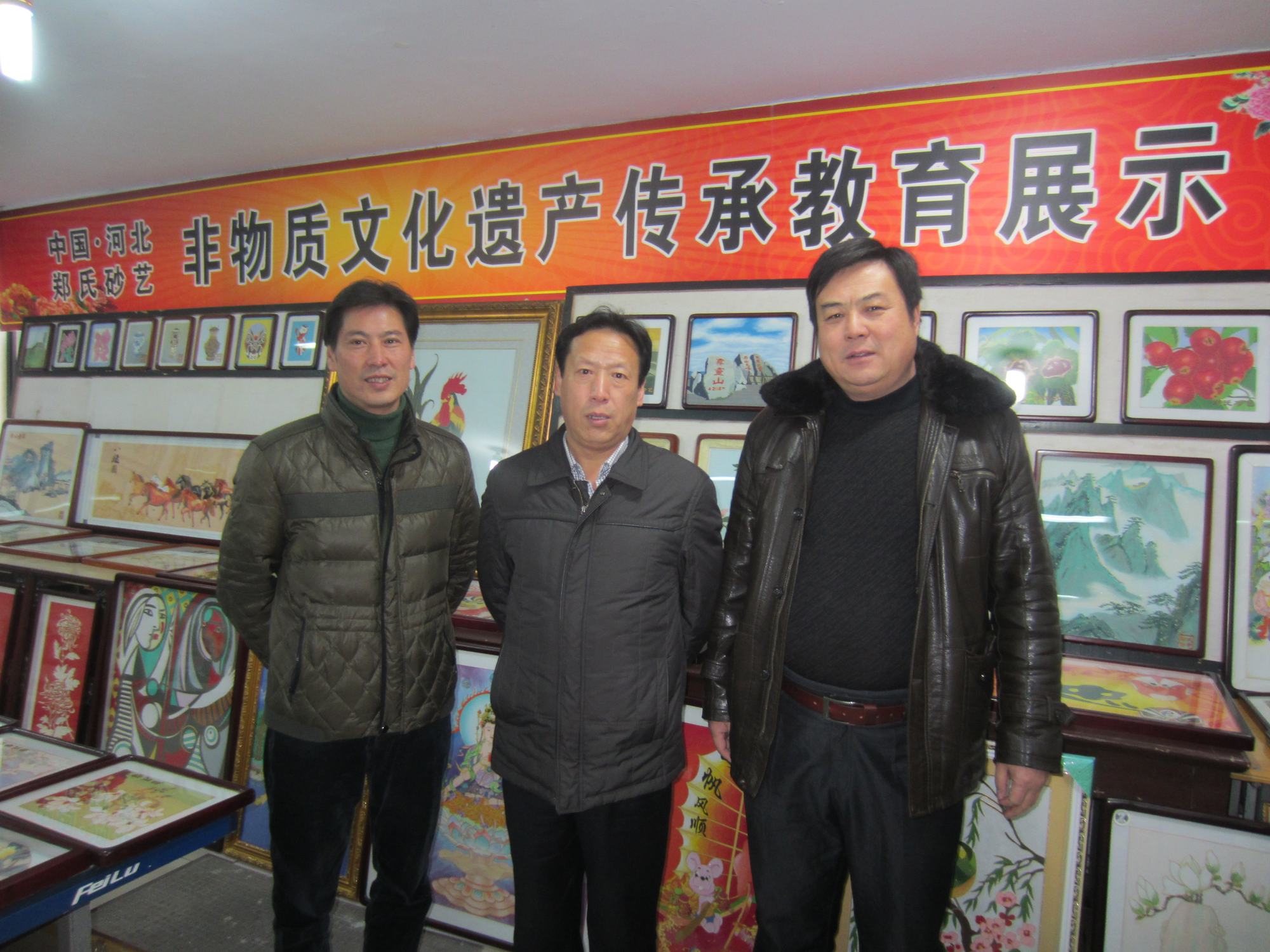 (中張東偉部長、左王俊杰副部長、右鄭鐵軍總經(jīng)理)2014年12月9日,新上任的縣委常委、宣傳部長張東偉在副部長王俊杰的陪同下來到鄭氏砂藝公司,就我縣文化產(chǎn)業(yè)發(fā)展情況進行考察調(diào)研。張部長聽取了鄭鐵軍總經(jīng)理的工作匯報,參觀了鄭氏砂藝展廳。在詳細了解了鄭氏砂藝的歷史起源、工藝流程、工藝特色、產(chǎn)品創(chuàng)新種類、產(chǎn)品銷路和企業(yè)發(fā)展目標等情況后強調(diào):鄭氏砂藝作為我縣最具特色的文化產(chǎn)業(yè),一定要抓住市場信息,不斷創(chuàng)新產(chǎn)品種類,提高產(chǎn)品質(zhì)量,加大對外聯(lián)系和外宣力度,要抓住和利用好國家大力發(fā)展文化產(chǎn)業(yè)的各項政策,把企業(yè)做好做大,使之成為興隆的一張名片。