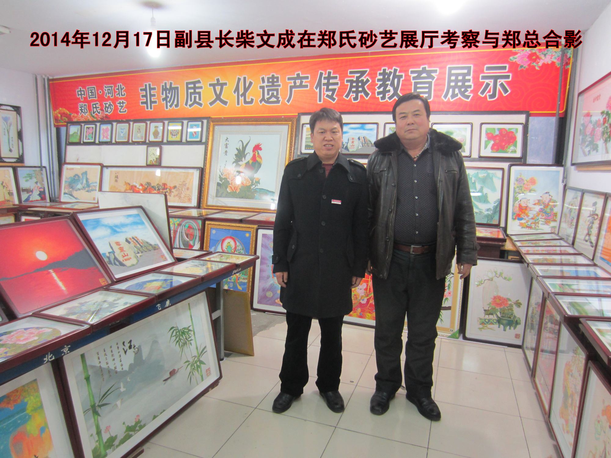 2014年12月17日,新任副縣長柴文成來到鄭氏砂藝進行工作視察。在展廳視察過程中,柴縣長邊看邊向陪同視察的鄭鐵軍總經(jīng)理詢問鄭氏砂藝的歷史淵源、選材配料、工藝流程、工藝特色、產(chǎn)品種類、銷售渠道與市場情況,并不時地提出指導(dǎo)性建議。他強調(diào)作為文化企業(yè),一定要狠抓產(chǎn)品質(zhì)量,減少瑕疵,多出精品。要上檔次,提品味,抓內(nèi)涵,成品牌,最后形成產(chǎn)業(yè),以推動縣域經(jīng)濟的快速發(fā)展。